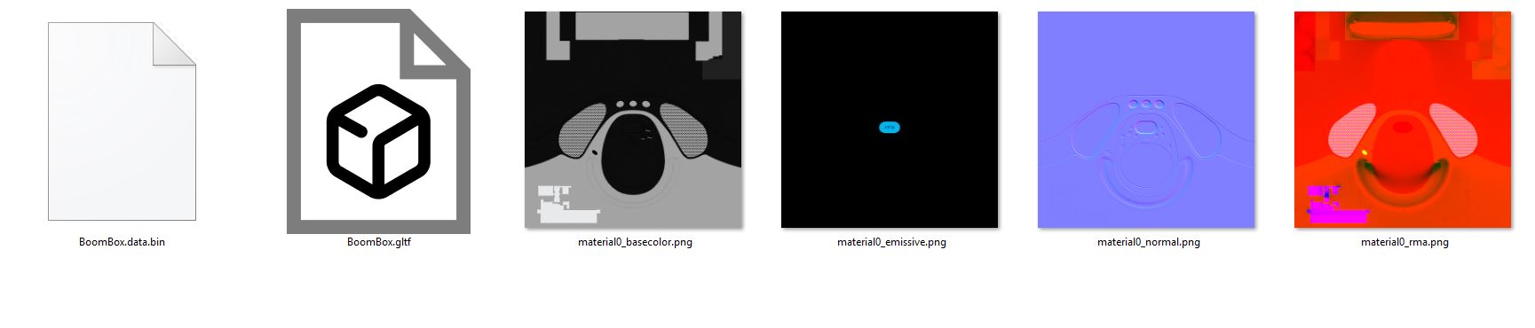 rpdx -i BoomBox.gltf --duplicate -d f:50% -u -b -e Output/BoomBox_compact.gltf