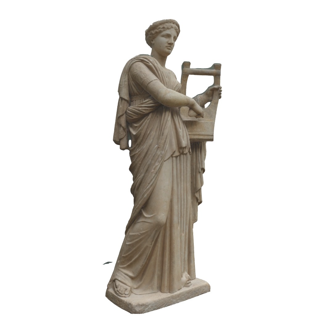 We will now remove a small feature on a simple example mesh from a 3D scan of the roman statue erato (courtesy of Geoffrey Marchal), which you can download here.