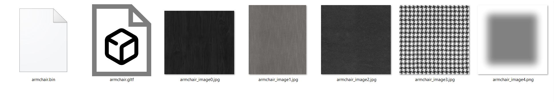 rpdx -i armchair.glb -c f:20% -e compact/armchair-compact.gltf